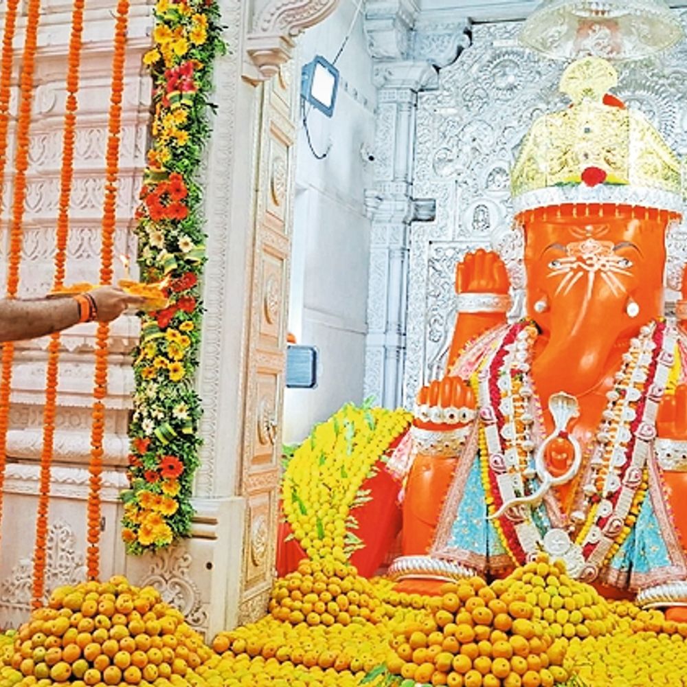 ग्रामदैवत विशाल गणेशाला ११ हजार १११ आंब्यांचा नैवेद्य:सकाळी अभिषेक दुपारी महापूजा करुन आरती