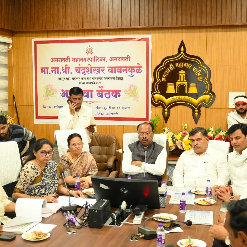 अमरावती शहराच्या विकासासाठी पाणी, शिक्षण आणि आरोग्य या त्रिसूत्रीवर भर देण्याचे निर्देश पालकमंत्री चंद्रशेखर बावनकुळे यांनी दिले आहेत. अमरावतीकरांना उत्तम दर्जाच्या सुविधा मिळाव्यात यासाठी प्रशासन आणि लोकप्रतिनिधींनी समन्वयाने काम करावे, असे आवाहनही त्यांनी केले. महापालिकेच्या आढावा बैठकीत त्यांनी पुढील पाच वर्षांचा सविस्तर विकास आराखडा तयार करण्याचे आदेश दिले. शनिवारी दुपारी झालेल्या या बैठकीत अमरावती शहराचा नियोजनबद्ध आणि सर्वांगीण विकास हे उद्दिष्ट ठेवण्यात आले होते. या आढावा सभेला अमरावतीच्या आमदार सुलभाताई खोडके, बडनेराचे आमदार रवि राणा, विधान परिषद सदस्य संजय खोडके व धीरज लिंगाडे यांच्यासह माजी पालकमंत्री प्रवीण पोटे आणि पालिकेच्या विविध विभागांचे अधिकारी उपस्थित होते. पालकमंत्र्यांनी शहरातील बेघर नागरिकांना प्राधान्य देत घरांचे पट्टे (हक्कपत्रे) वाटप करण्याचे निर्देश दिले. ज्यांच्याकडे स्वतःचे घर नाही, अशा नागरिकांची यादी तयार करून त्यांना विविध गृहनिर्माण योजनांद्वारे घरे उपलब्ध करून देण्याची कार्यवाही तातडीने सुरू करावी, असेही ते म्हणाले. पाणीपुरवठा अधिक सक्षम करण्यासाठी जलविस्तार योजना राबविण्याचे निर्देश देण्यात आले, जेणेकरून शहरातील सर्व भागांमध्ये नियमित व शुद्ध पाणीपुरवठा होईल. रस्ते, नाले, स्वच्छता आणि आरोग्य सुविधा यांसारख्या मूलभूत गरजांवर प्राधान्याने काम करण्याचे निर्देशही बावनकुळे यांनी दिले. ऊर्जाबचत आणि पर्यावरण संवर्धनाच्या दृष्टीने शहरातील पथदिवे सौरऊर्जेवर चालविण्याची सूचना करण्यात आली. तसेच, मनपाच्या शाळा, दवाखाने आणि प्रशासकीय इमारतींवर सौरऊर्जा प्रकल्प बसविण्यात येणार असल्याचे त्यांनी स्पष्ट केले.शहरातील अतिक्रमणे हटवून सुव्यवस्था प्रस्थापित करण्यासाठी कठोर कारवाई करण्याचे आदेश देण्यात आले. त्याचबरोबर, लघु व्यावसायिकांसाठी स्वतंत्र हॉकर्स झोन तयार करून त्यांना नियोजित जागा उपलब्ध करून देण्याचा निर्णय घेण्यात आला. या बैठकीस महापौर श्रीचंद तेजवाणी, उपमहापौर सचिन भेंडे, स्थायी समिती सभापती अविनाश मार्डीकर, सभागृह नेता चेतन गावंडे, गटनेता डॉ. राजेंद्र तायडे, गटनेता नाना आमले, शहर सुधार समिती सभापती राधा कुरील, उपसभापती सुमती ढोके, शिक्षण समिती सभापती अॅड. प्रीती रेवणे, महिला बाल कल्याण समिती सभापती ममता आवारे, उपसभापती लता देशमुख, विधी समिती उपसभापती डॉ. मधुरा काहाळे, आयुक्त वर्षा लड्डा, अतिरिक्त आयुक्त शिल्पा नाईक, उपायुक्त नरेंद्र वानखडे, उपायुक्त योगेश पिठे, नगरसेवक आणि विविध विभागांचे प्रतिनिधी मोठ्या संख्येने उपस्थित होते.