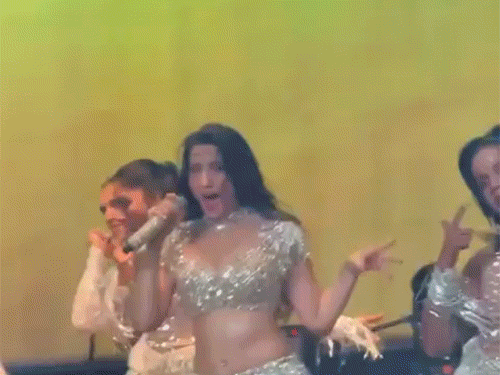 लुधियानात नोरा फतेहीने दाखवल्या डान्स मूव्ह्स:'ओह मामा तेतेमा' सारख्या गाण्यांवर परफॉर्मन्स दिला; कॉकटेल पार्टीत बाऊन्सर्सनी गर्दी कशीबशी सांभाळली