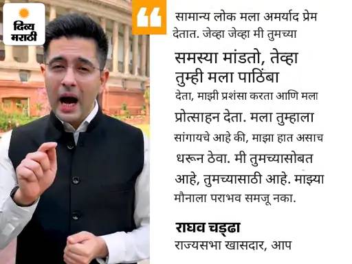 त्यानंतर 3 एप्रिल रोजी राघव चड्ढा यांनी व्हिडिओ जारी करत म्हटले – मी संसदेत जनतेचे मुद्दे उपस्थित केले, हा गुन्हा आहे का? हे मुद्दे उपस्थित केल्याने सामान्य माणसाचा फायदा झाला तर आपचे काय नुकसान झाले? ज्या लोकांनी आज संसदेत माझे बोलण्याचे अधिकार माझ्याकडून हिरावून घेतले, मला शांत केले, त्यांनाही मला काही सांगायचे आहे. माझ्या शांततेला माझा पराभव समजू नका. मी ती नदी आहे, जी वेळ आल्यावर पूर बनते.