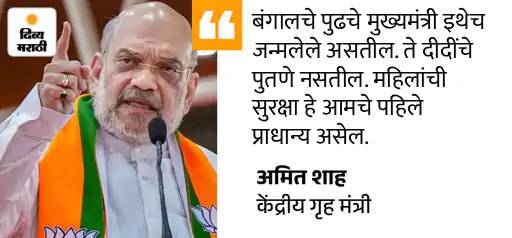 - मी दीदींना सांगू इच्छितो की पुढचे मुख्यमंत्री बंगालचेच असतील. ते केवळ तुमचे पुतणे नसतील, तर भाजपचे कार्यकर्ते असतील. महिलांची सुरक्षा सुनिश्चित करणे हे आमचे प्राधान्य असेल.”